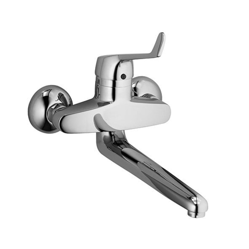 Описание смесителя для раковины Kludi Medi Mix (331150564) Eco-функция: экономия воды не менее 40%. длинный рычаг настенный монтаж длина излива от стены 300 мм Care-аэратор M 24x1 керамический картридж с ограничителем го...