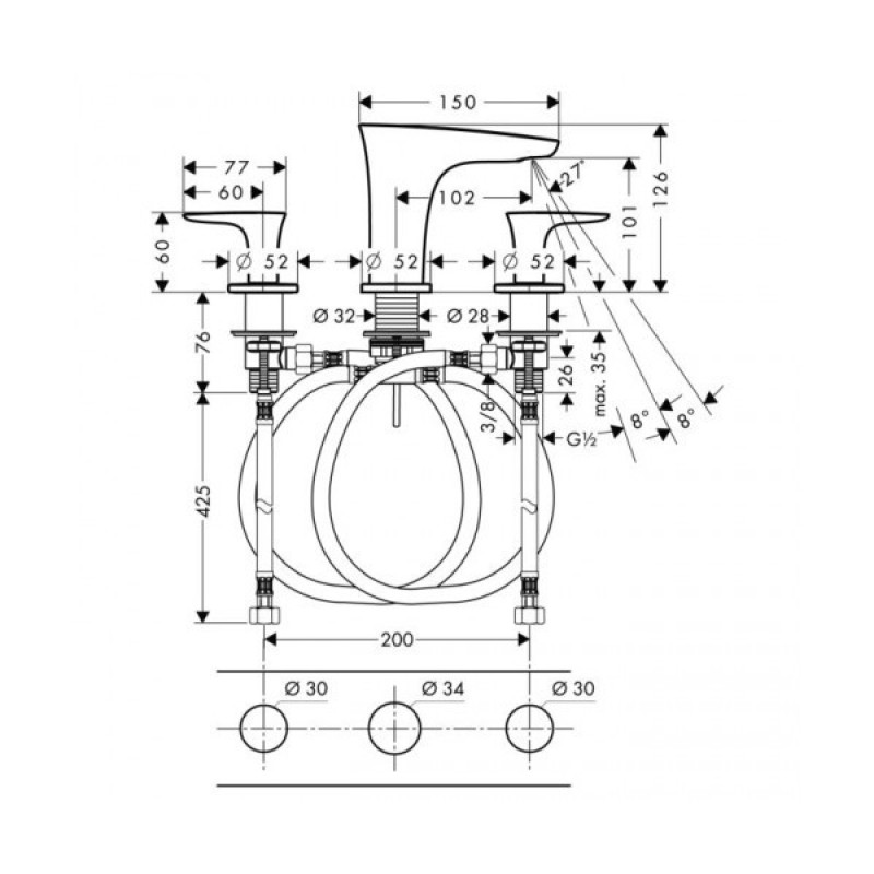 Смеситель для раковины на 3 отверстия Hansgrohe PuraVida 15073000 — характеристики та опис