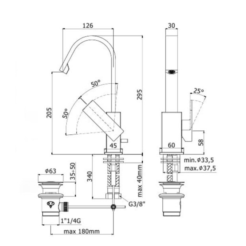 высота до излива 205 мм