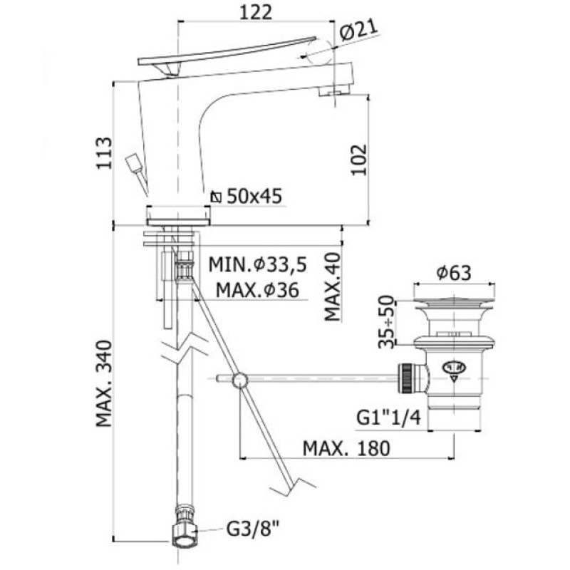 высота до излива 102 мм