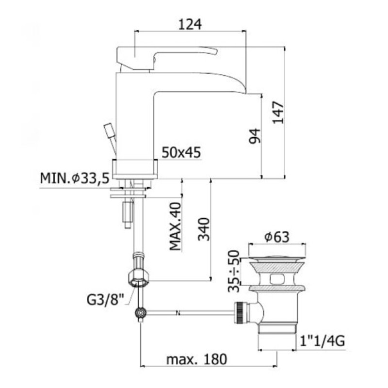 смеситель доступен без донного клапана и с нажимным донным клапаном Clic-Clac