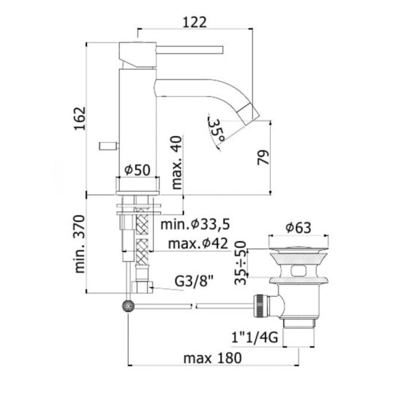 смеситель доступен без донного клапана и с нажимным донным клапаном Clic-Clac