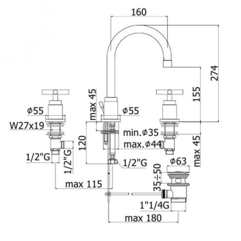 Смеситель для раковины Paffoni Quattro (QTV055CR) — характеристики та опис