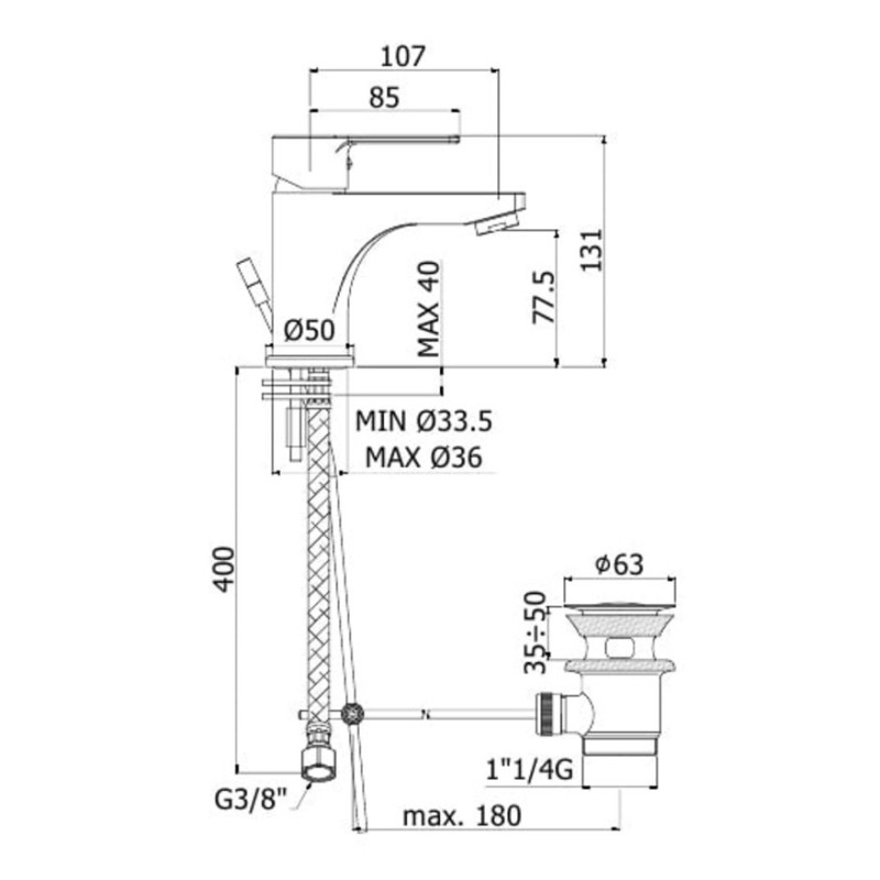 высота до излива 77 мм