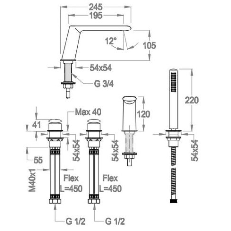 Схема смесителя для ванны Fir Dynamica 88 (88.4856.2.10.00)