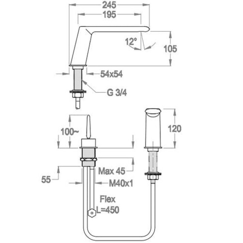 Схема смесителя для биде Fir Dynamica JK 89 (89.4836.2.10.00)