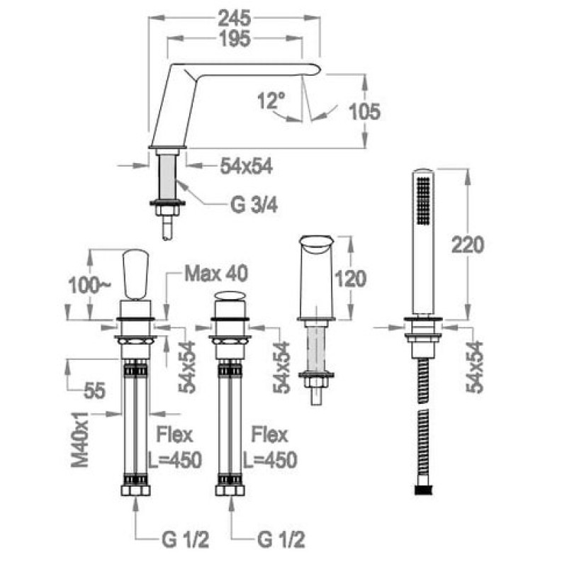 Смеситель для ванны Fir Dynamica JK 89 (89.4856.2.10.00)