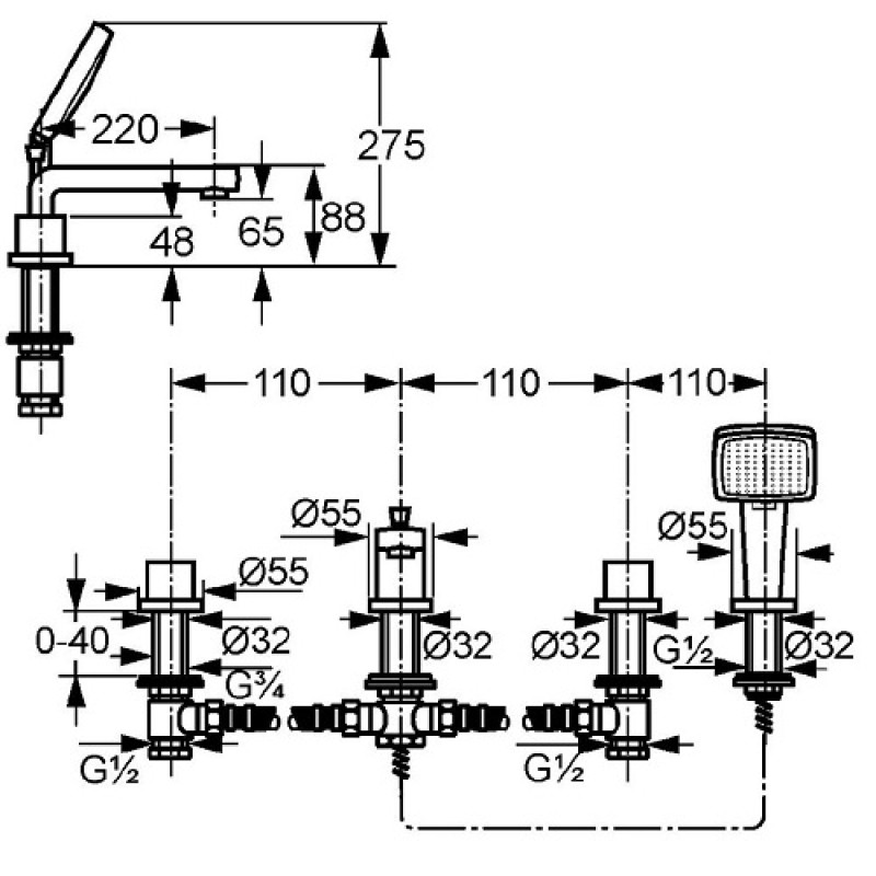 Чертеж с размерами смесителя Kludi Q-BEO (504240542)