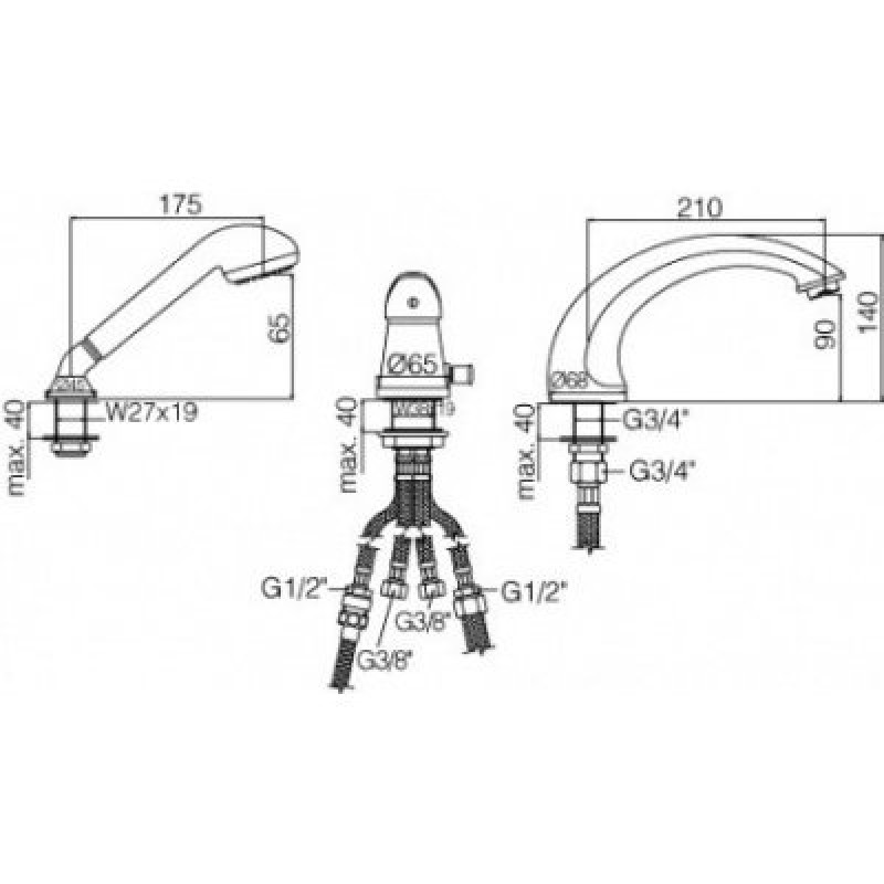 однорычажный смеситель для ванны на 3 отверстия