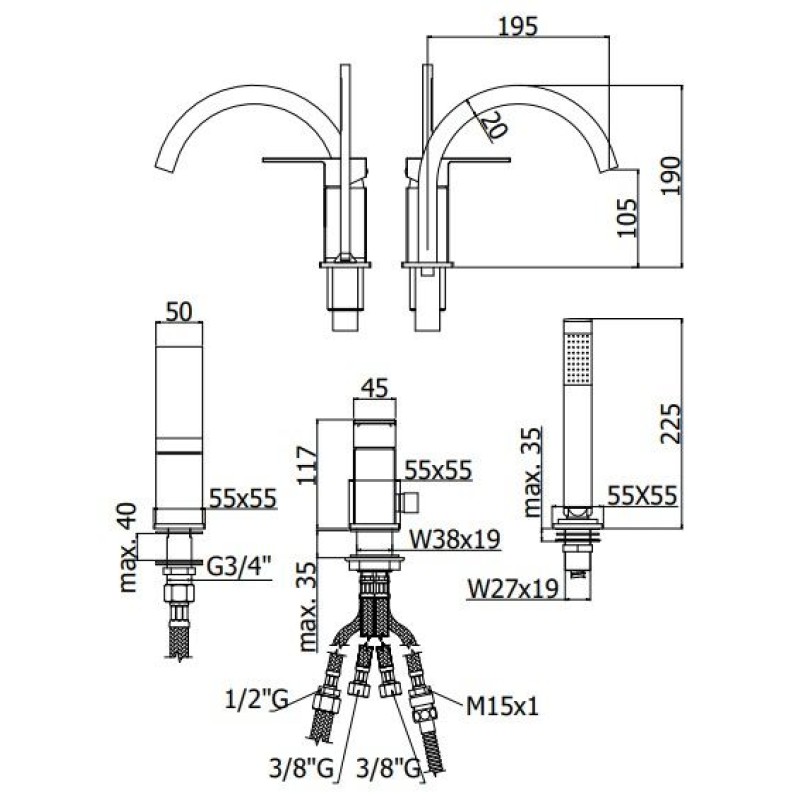 Смеситель для ванны Paffoni Elle (EL040CR) — характеристики та опис