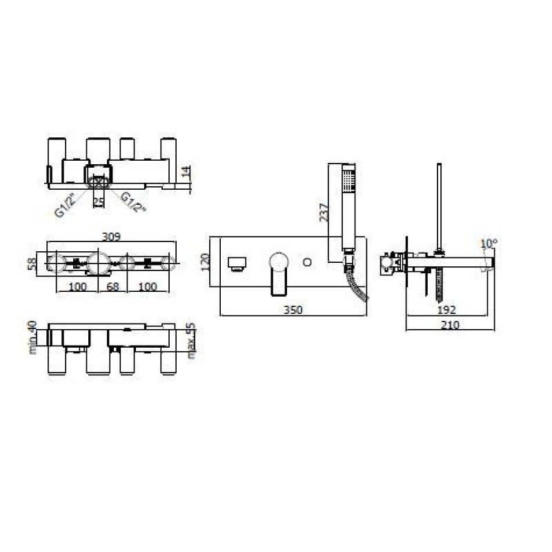 однорычажный настенный cмеситель для ванны
