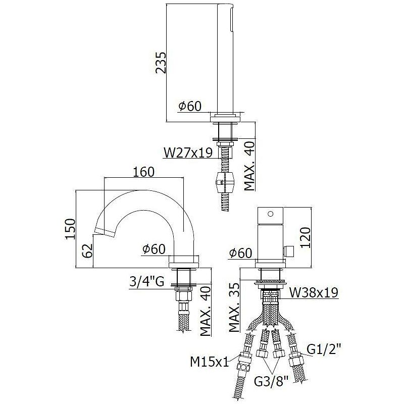 однорычажный смеситель для ванны на 3 отверстия