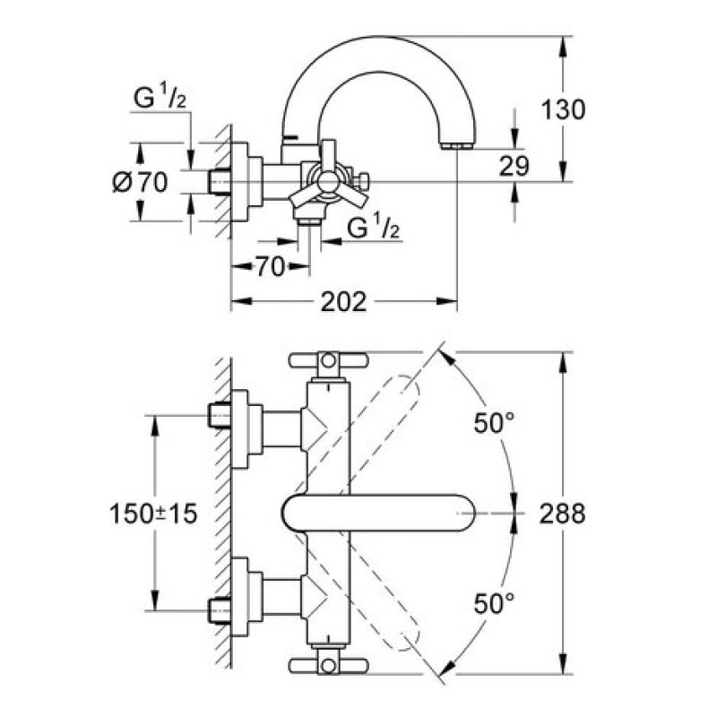 Схема с размерами смесителя Grohe Atrio Ypsilon (25010000)