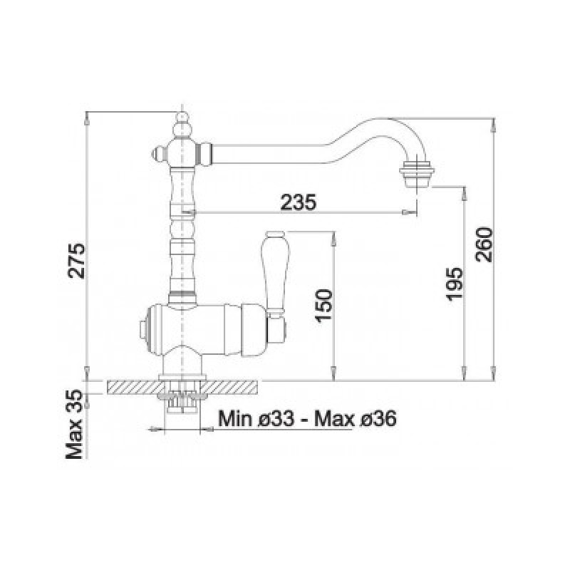 однозахватный, для мойки, традиционная форма излива, горизонтальный монтаж