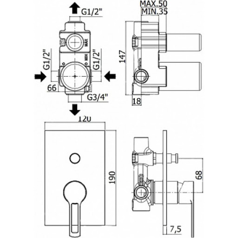 автоматический переключатель ванна/душ