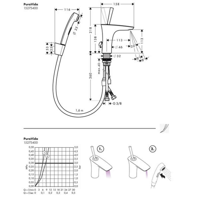 Смеситель с гигиеническим душем Hansgrohe PuraVida 15275400 — характеристики та опис