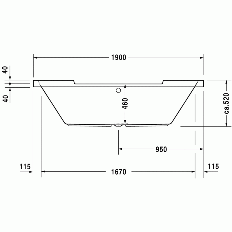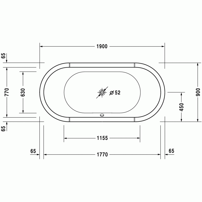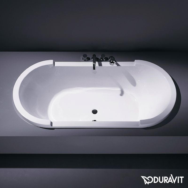 Duravit Starck ванна овальная 190 см. Характеристики ванны:Ширина90 смГлубина46 смДлина190 смОбъем225 лВес32 кгМатериал: санитарный акрил