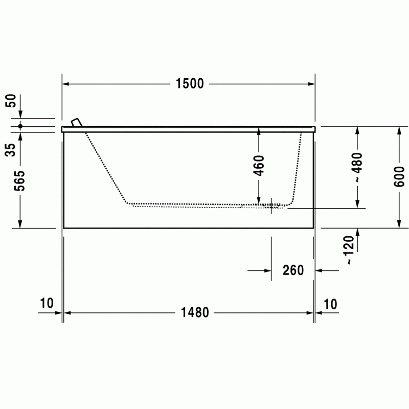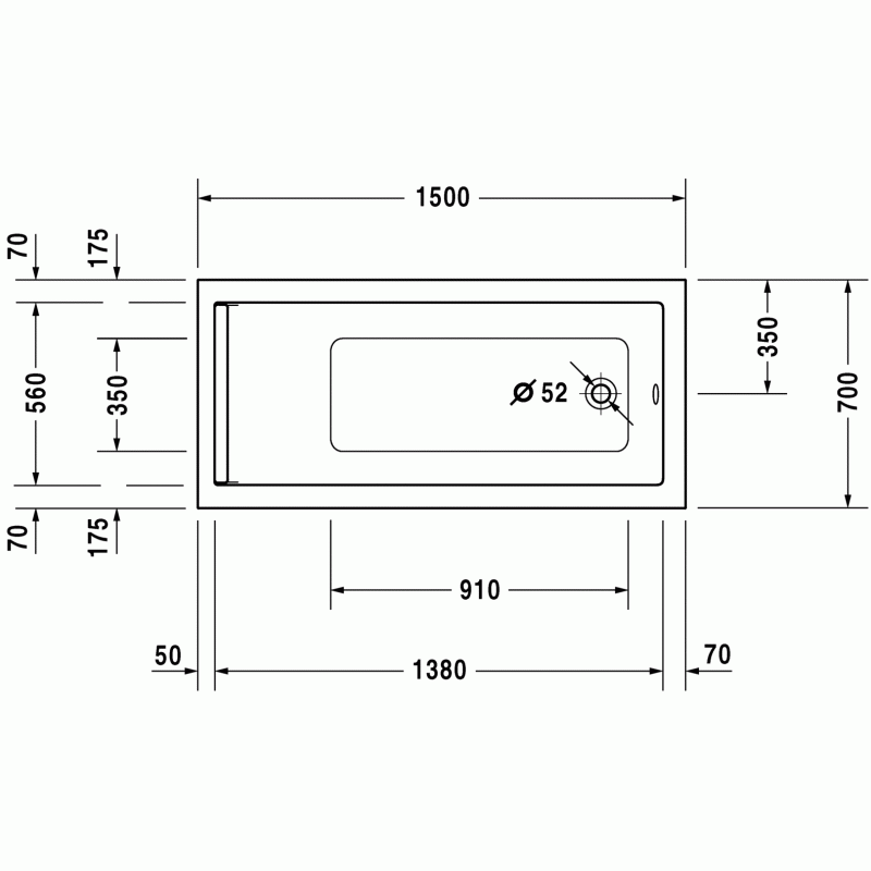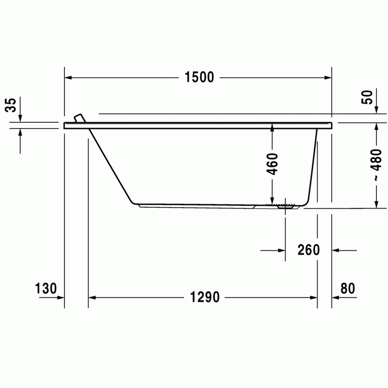 Duravit Starck ванна прямоугольная 150 см. Характеристики ванны:Ширина70 смГлубина46 смДлина150 смОбъем196 лВес24 кгМатериал: санитарный акрил