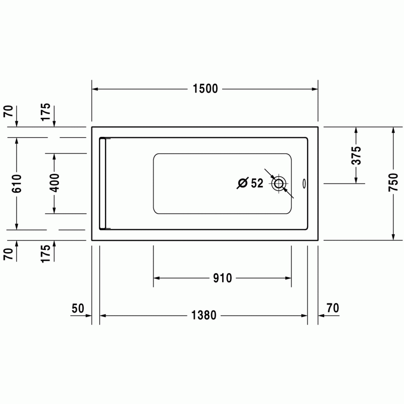 Duravit Starck ванна прямоугольная 150 см. Характеристики ванны:Ширина75 смГлубина46 смДлина150 смОбъем215 лВес24,5 кгМатериал: санитарный акрил