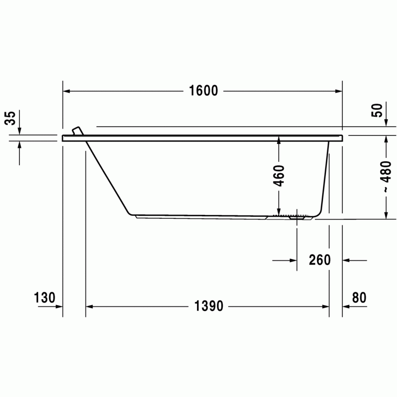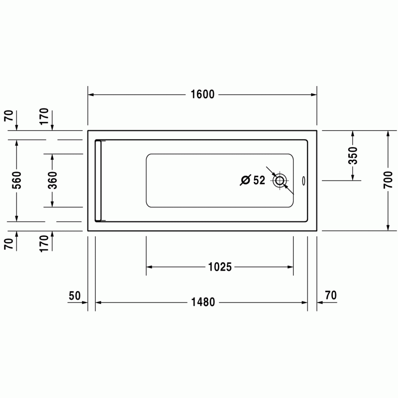 Duravit Starck ванна прямоугольная 160 см. Характеристики ванны:Ширина70 смГлубина46 смДлина160 смОбъем210 лВес26 кгМатериал: санитарный акрил