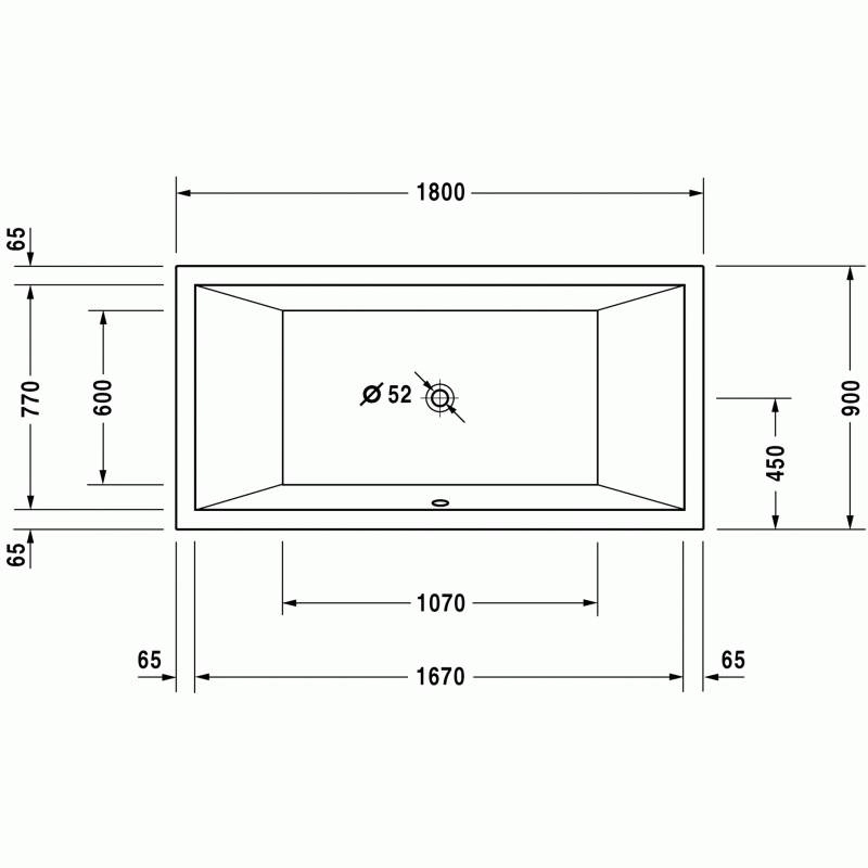 Duravit Starck ванна прямоугольная 180 см, с двумя наклонами для спины. Характеристики ванны:Ширина90 смГлубина46 смДлина180 смОбъем252 лВес42,5 кгМатериал: санитарный акрил