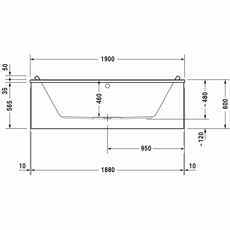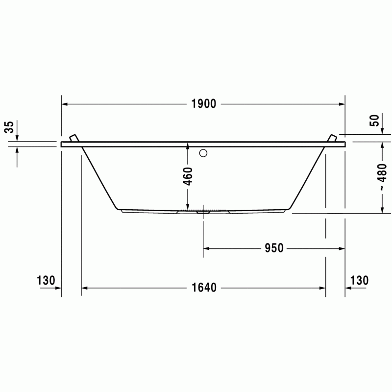 Duravit Starck ванна прямоугольная 190 см. Характеристики ванны:Ширина90 смГлубина46 смДлина190 смОбъем316 лВес33,6 кгМатериал: санитарный акрил