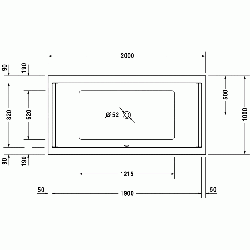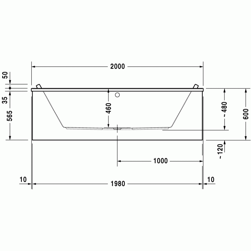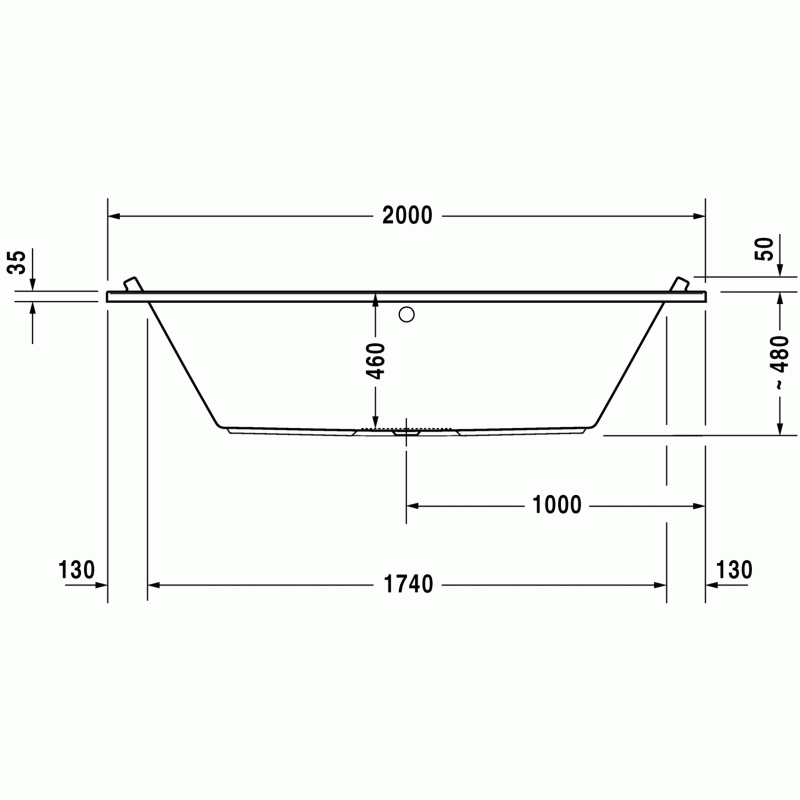 Duravit Starck ванна прямоугольная 200 см. Характеристики ванны:Ширина100 смГлубина46 смДлина200 смОбъем384 лВес39,5 кгМатериал: санитарный акрил