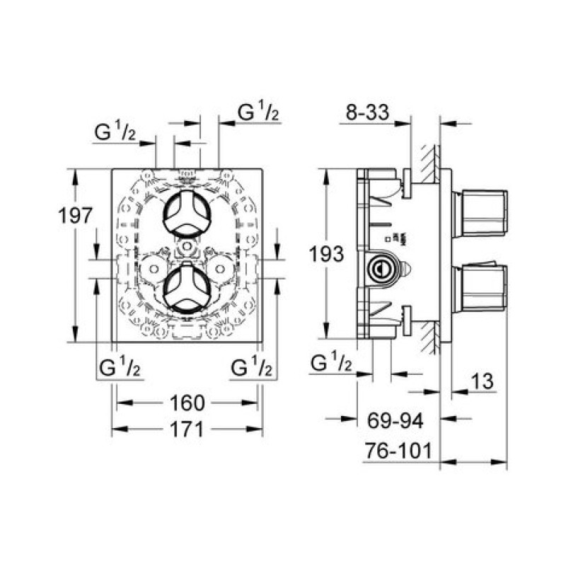 - термостатический смеситель без встраиваемого механизма (35500000)