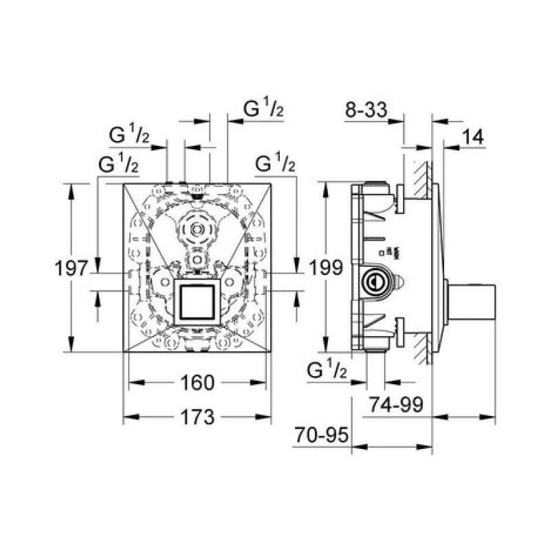 - GROHE SafeStop Plus встроенный ограничитель температуры при макс. 50°C