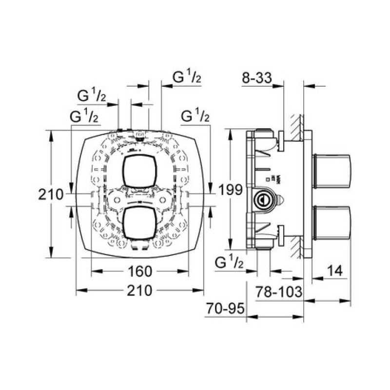 - GROHE SafeStop Plus optional temperature limiter at 43°C included