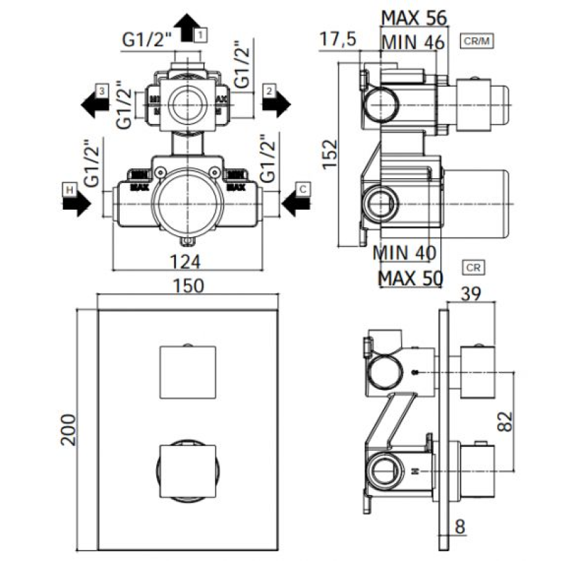 термостатический смеситель, на три позиции