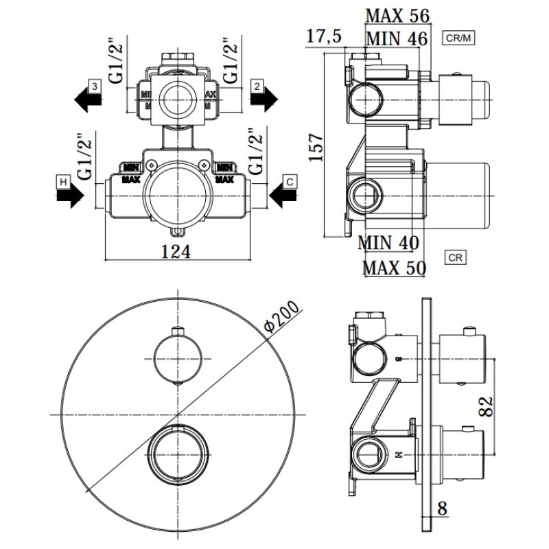 термостатический смеситель, на две позиции