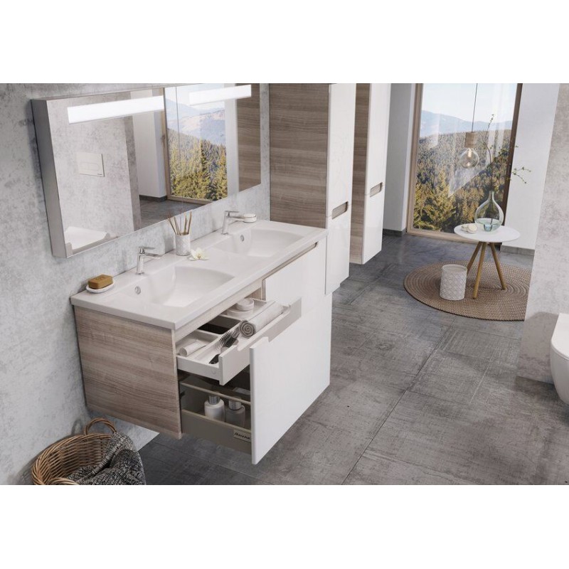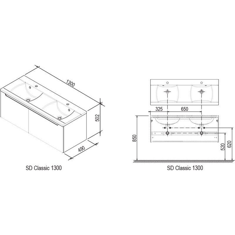 Повышает практическую ценность умывальника Classic. Шкафчик оснащен двумя высокими ящиками (40 см). В правой его части есть встроенный дополнительный ящик для мелких вещей, который также можно докупить и для левой его части. Шкафчик предназначен под двойной умывальник Classik 1300.
