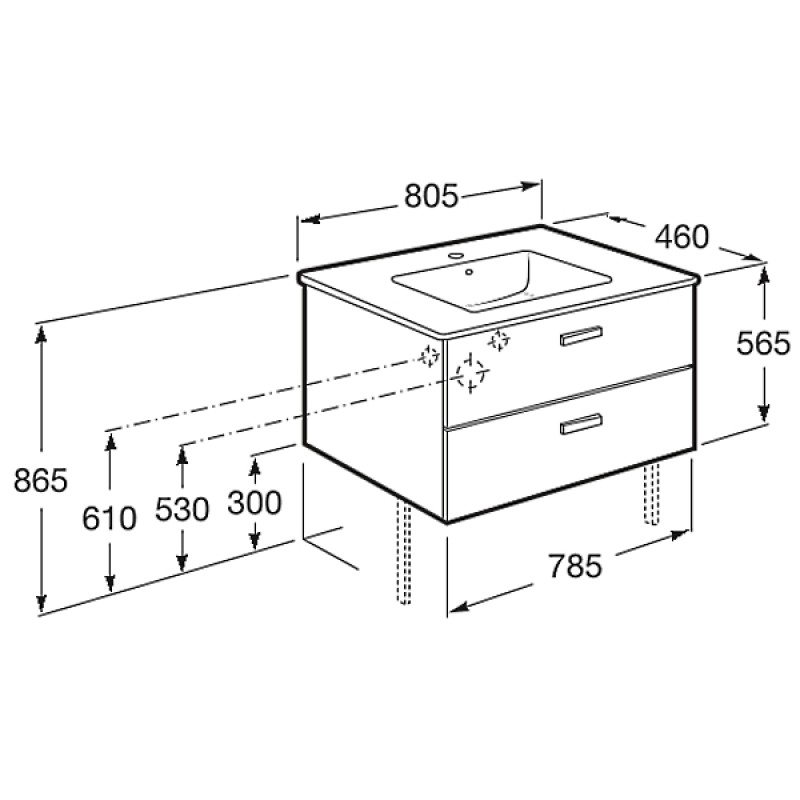 Тумба Roca Victoria A855852423 с умывальником 80 см — характеристики та опис