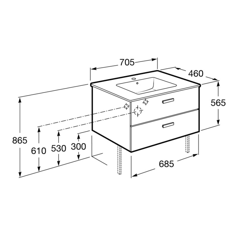 Тумба Roca Victoria A855853422 с умывальником 70 см — характеристики та опис