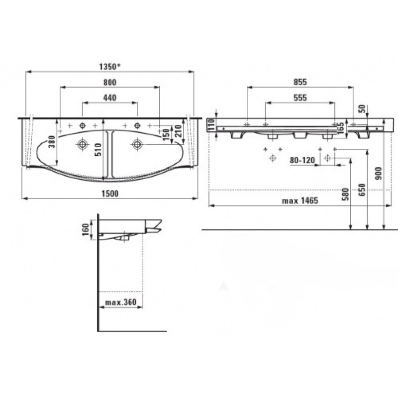 Умывальник двойной Laufen Palace 150 H8147060001041 с держателем полотенца — характеристики та опис