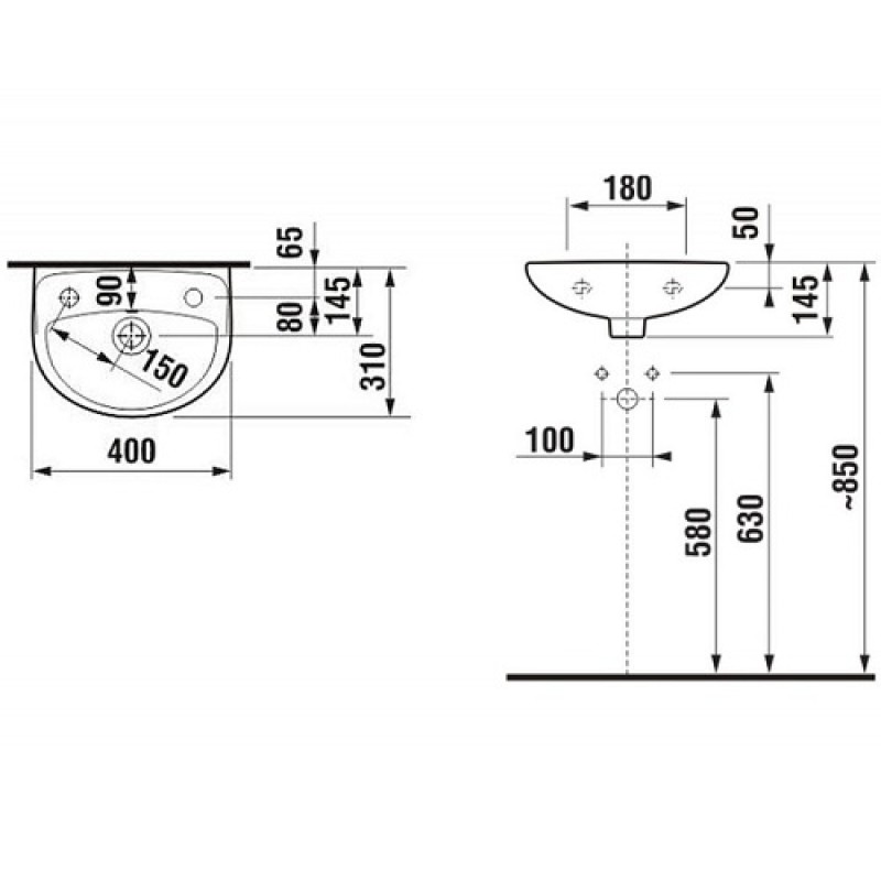 У данного умывальника, отверстие под смеситель находиться с правой стороны.