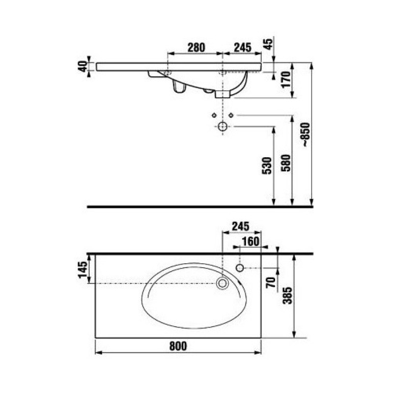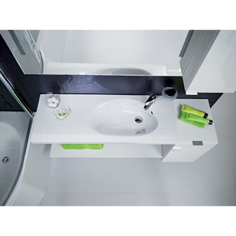Отверстие под смеситель в данном умывальнике находится с правой стороны.