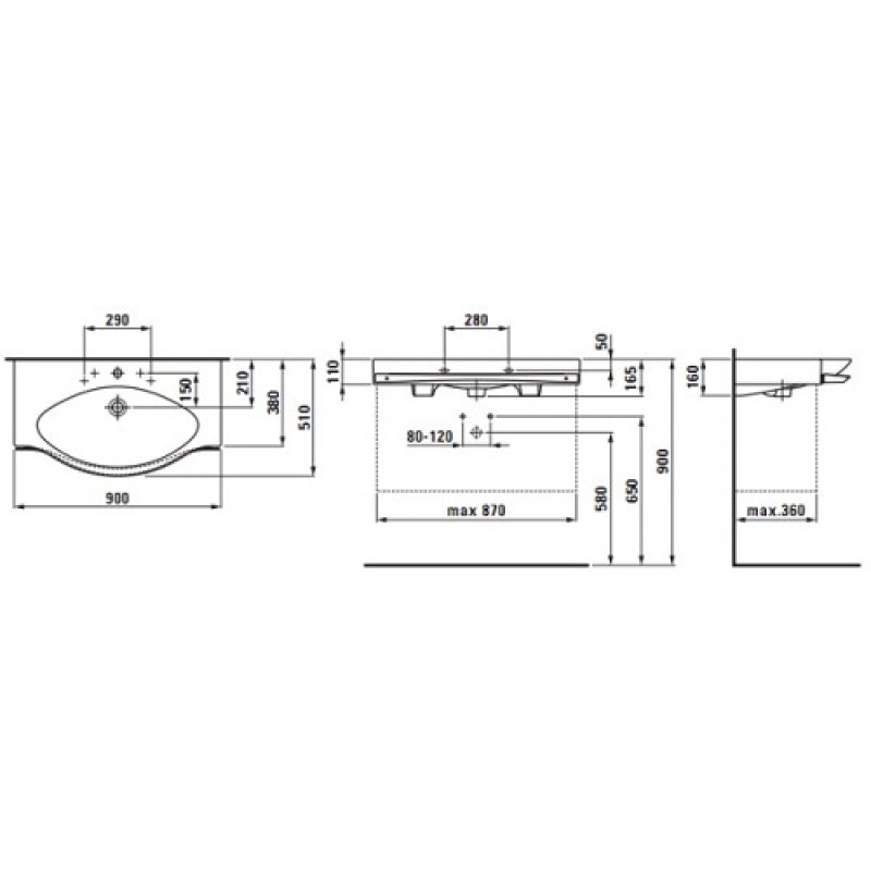 Умивальник Palace 900 мм H8127020001041 LAUFEN — характеристики та опис