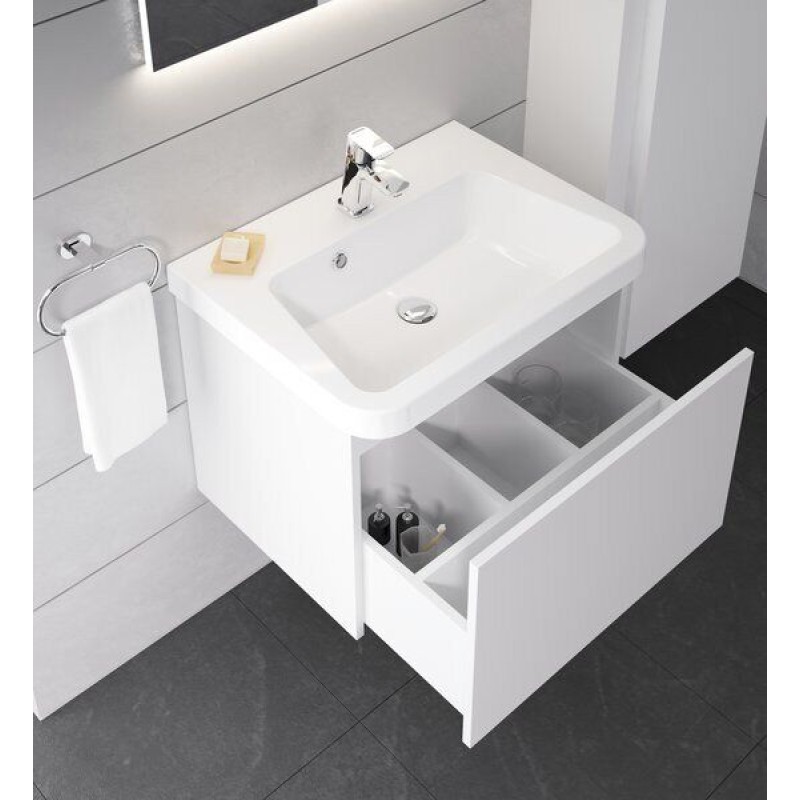Дизайн, идущий Вам навстречу. Умывальник предоставляет удобное моющее пространство и практичное место для вещей.