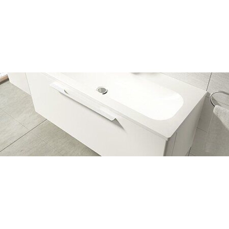 Умывальник концепции Ring с закругленными краями выполнен в дизайне с одноименным шкафчиком. Этот умывальник не предназначен для самостоятельного использования. Он великолепно смотрится в комплекте с мебелью концепции Ring.