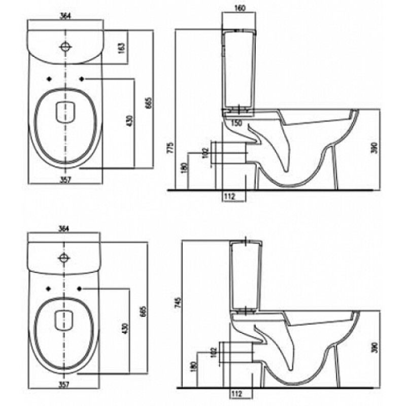- унитаз-компакт без внутреннего обода 356х665х390 мм