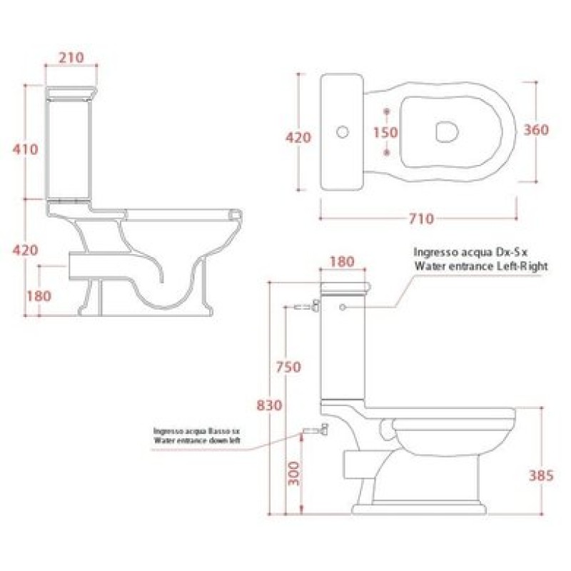 Схема с размерами унитаза-компакта Artceram Hermitage (HEV004 01; 56)
