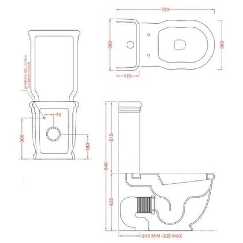 Схема с размерами унитаза-компакта Artceram Hermitage (HEV006 01; 00)