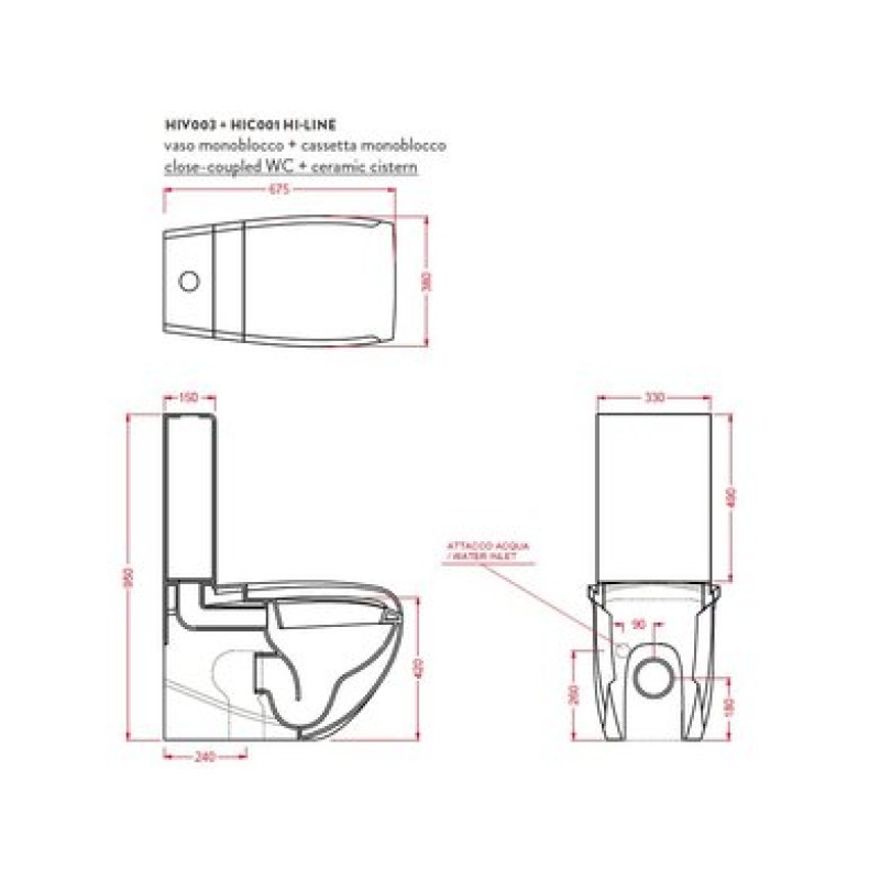 Схема с размерами унитаза-компакта Artceram Hi-Line (HIV003 01; 89)