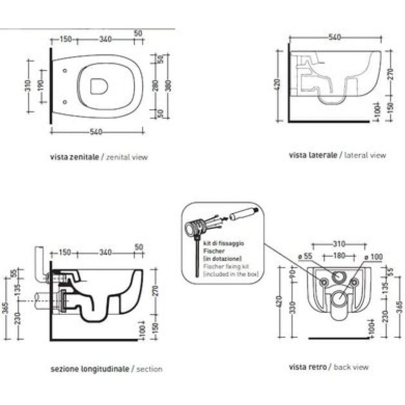Схема подвесного безободкового унитаза Flaminia Bonola goclean (BN118G)