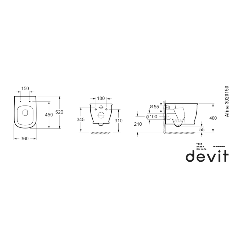 Унітаз підвісний Devit Afina 3020150 із сидінням з дюропласту Soft Close, quick-fix — характеристики та опис