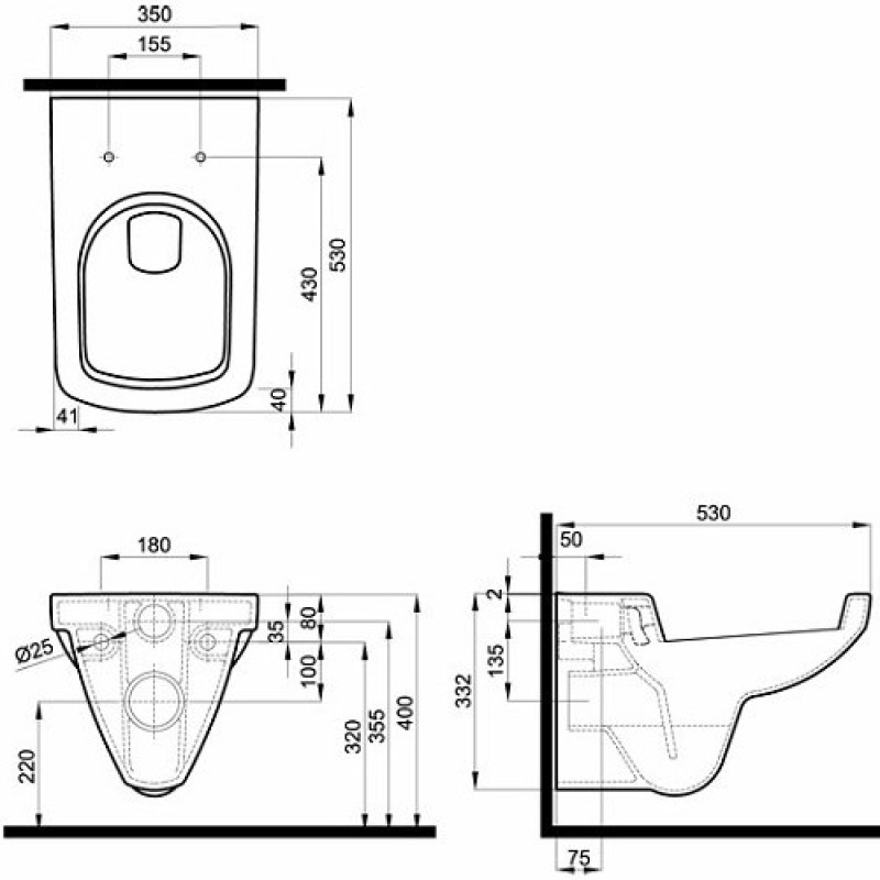 - подвесной унитаз укороченая модель 350х480х332 мм