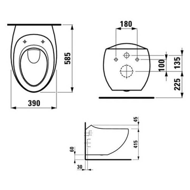 Унитаз подвесной Laufen ILBAGNOALESSI ONE с покрытием LCC (H8209764000001 ) без сиденья