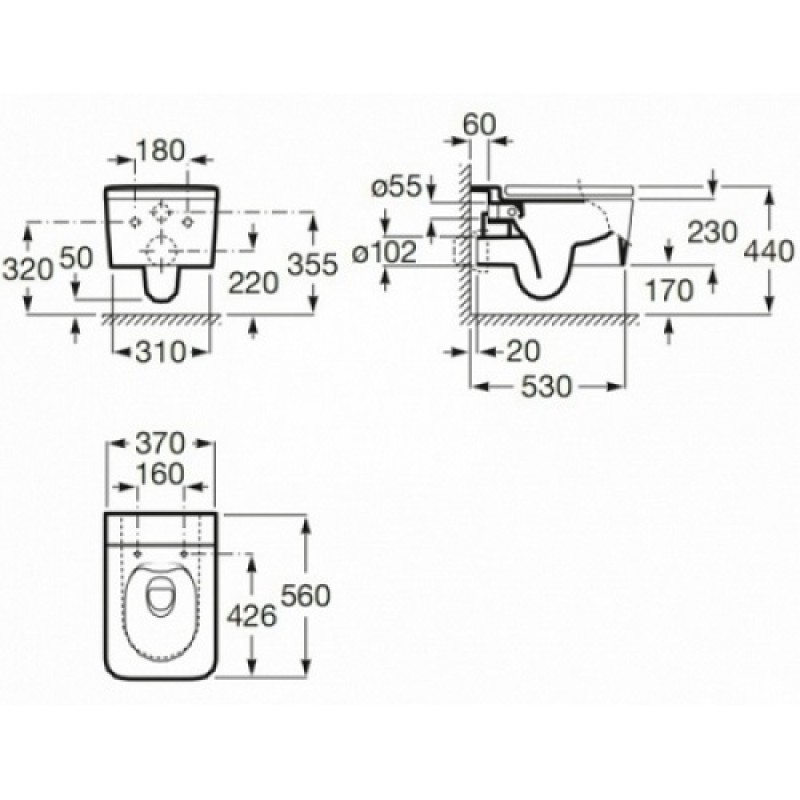 Унітаз підвісний Inspira Square Rimless (A346537000), Roca — характеристики та опис